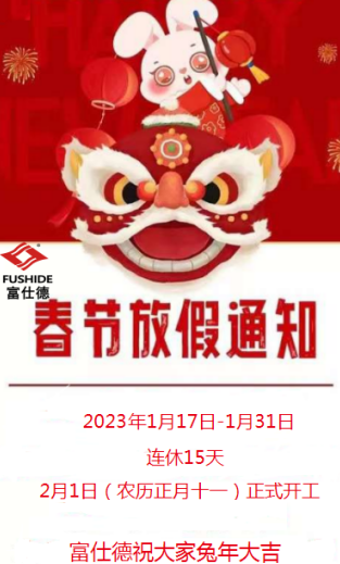 前路浩浩蕩蕩,萬(wàn)事皆期待。感謝各位客戶朋友的信任與支持,一起走過(guò)不平凡的2022年。 新春將至,我司春節(jié)放假時(shí)間為:2023年01月17日(十二月二十六)至2023年01月31日(正月初十)共15天,2023年02月01日(正月十一)正式開工上班。1月12日起,異地不發(fā)貨,若有帶來(lái)…2023-01-07查看詳情 -